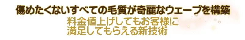 | ③ 無重力+酸性還元剤の「パーマ・縮毛矯正・デジタルパーマ」 | 今まではなかった | ハイダメージ・スーパーダメージ・さらに 傷めたくないすべての毛質が対象にもなる |