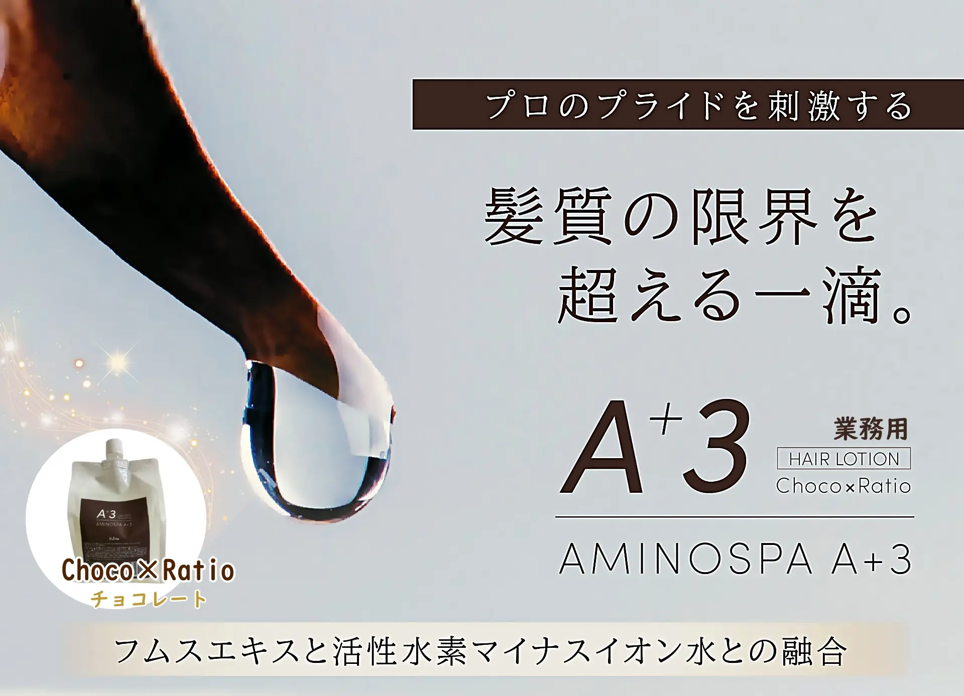 フムスエキスと活性水素マイナスイオン水の融合で、現行使用薬剤の成分能力や施術結果の限界点を今迄よりアップグレードさせる誘導成分と考えて下さい。シャンプーやトリートメントの有効効果を高め、カラー施術に於いては、ダメージを抑制し、発色を豊かに、パーマに於いては、ダメージヘアーの方にもリッジが出ると評判の優れもの業務用品。